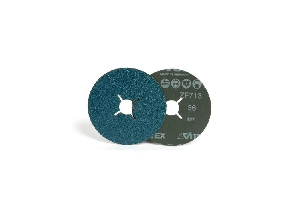 Vulkanfíbrový kotúč 115 mm ZF713 zrno 120 VSM so zirkónkorundovým zrnom so samoostriacim efektom na obrábanie húževnatých povrchov. Použitie na brúsenie ocele, nerezovej ocele, žiaruvzdornej ocele, uhlíkovej ocele, neželezné kovy, Cr-Ni zliatiny, šedej liatiny. Upnutie do uhlovej brúsky pomocou podložného taniera pre vulkanfíbry.
