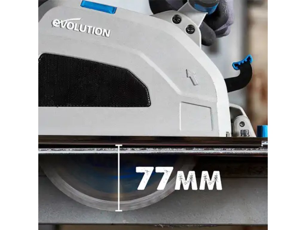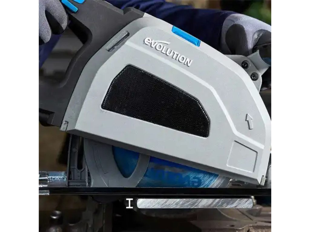 S210CCS ponúka nastaviteľnú hĺbku rezu až do 77 mm a rýchloupínaciu páku pre presné ponorné rezy – ideálne napríklad pri montáži kovových strešných krytín. Veľké okienko kotúča a jasné LED osvetlenie umožňujú presné a rovné rezy aj bez vodiacej lišty. Pre ešte vyššiu presnosť je možné pílu doplniť o adaptér na vodiace lišty, kompatibilný s pásmi kotúčových píl EVOLUTION, ktoré sú dostupné v dĺžkach 1400 mm alebo 2800 mm. (Adaptér sa predáva samostatne.)