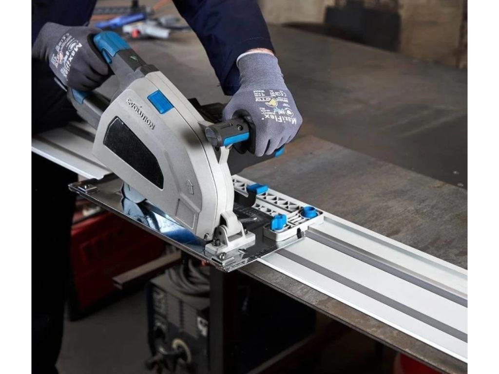 S210CCS ponúka nastaviteľnú hĺbku rezu až do 77 mm a rýchloupínaciu páku pre presné ponorné rezy – ideálne napríklad pri montáži kovových strešných krytín. Veľké okienko kotúča a jasné LED osvetlenie umožňujú presné a rovné rezy aj bez vodiacej lišty. Pre ešte vyššiu presnosť je možné pílu doplniť o adaptér na vodiace lišty, kompatibilný s pásmi kotúčových píl EVOLUTION, ktoré sú dostupné v dĺžkach 1400 mm alebo 2800 mm.