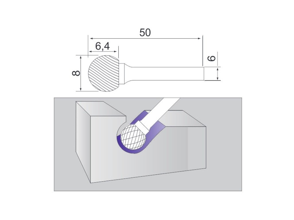Guľová fréza na kov (typ D) 8x6,4 / 6 mm Sherman