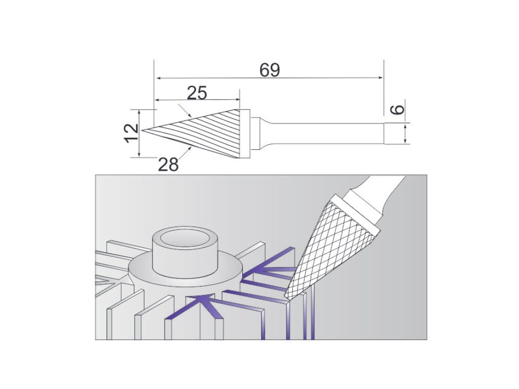 Kužeľová fréza na kov (typ M) 28° 12x25 / 6 mm Sherman