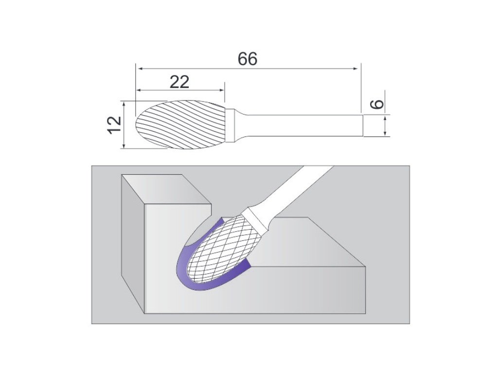 Oválna fréza na kov (typ E) 12x22x6 mm Sherman
