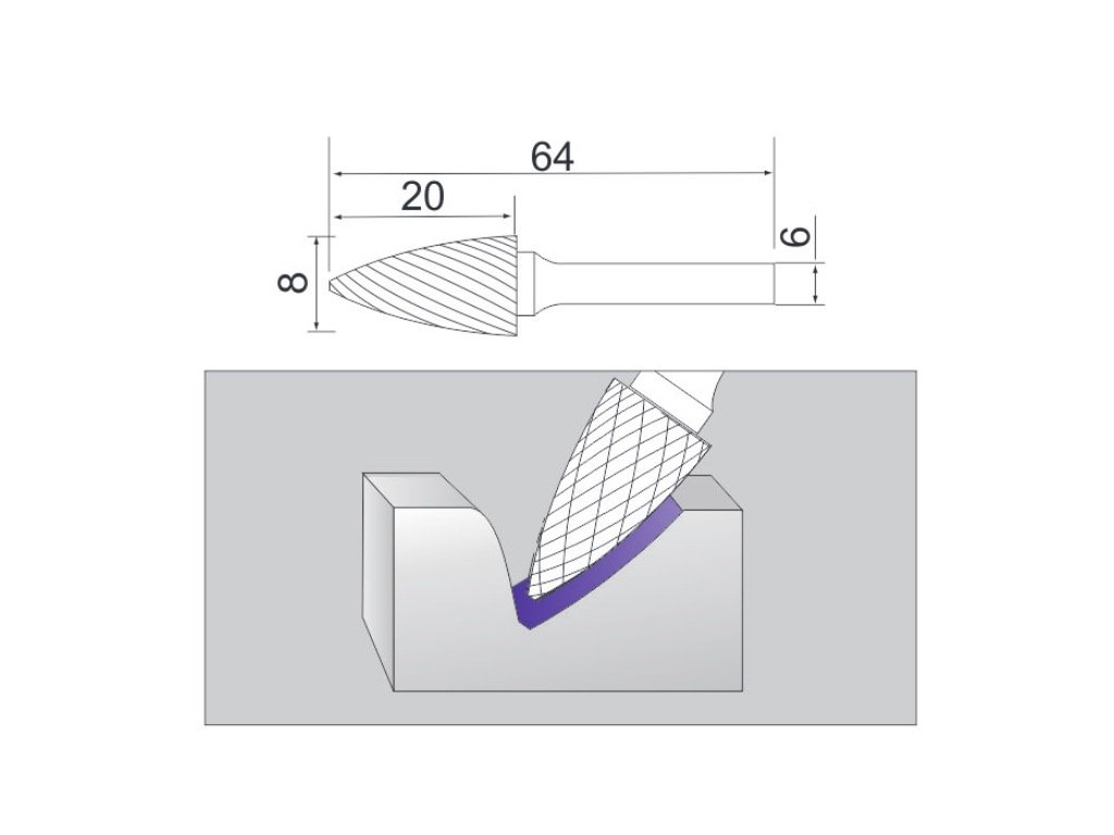 Stromčeková fréza na kov (typ G) 8x20x6 mm Sherman