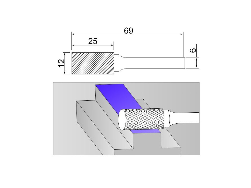 Valcová fréza na kov (typ A) 12x25 / 6 mm Sherman