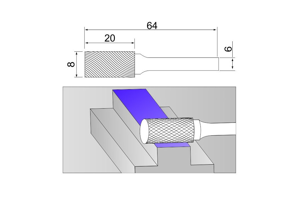 Valcová fréza na kov (typ A) 8x20 / 6 mm Sherman
