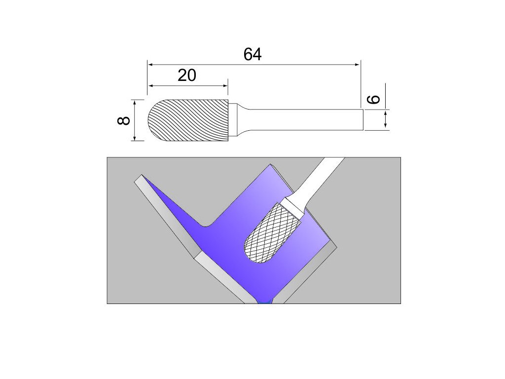 Valcová zaoblená fréza na kov (typ C) 8x20 / 6 mm Sherman