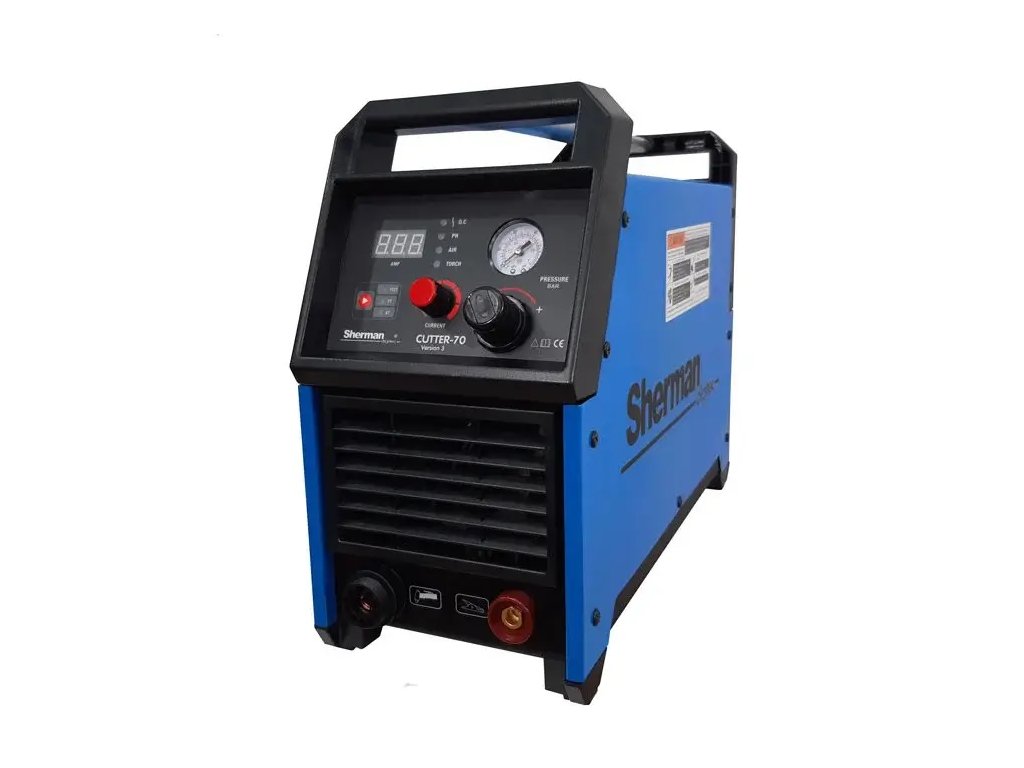 Plazmová rezačka CUTTER 70 Sherman patrí do novej série zariadení vyrobených technológiou IGBT 200kHz pre vzduchové plazmové rezanie plechov a oceľových, hliníkových a medených prvkov.