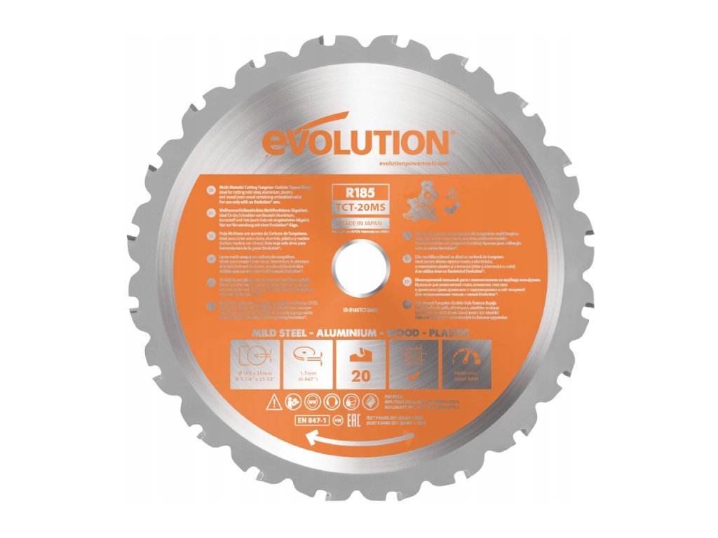 Pílové kotúče Evolution Multi-Material obsahujú vysokokvalitné japonské karbidové zuby, tvrdené telesá kotúčov a mimoriadne vysokokvalitné techniky spájkovania, sú špičkou už viac ako desať rokov. Konfigurácia priemerov a primeraný počet zubov umožňuje rýchle a efektívne rezy.