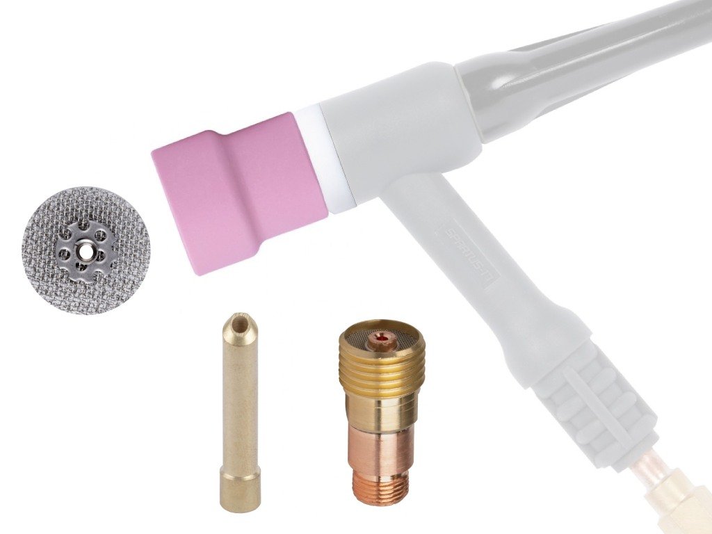 Sada CUPSYSTEM 2,4 mm / #12 na TIG horáky 17/18/26. Keramická plynová hubica spolu s presnými sitkami v sade CUPSYSTEM umožňuje rovnomerné rozloženie ochranného plynu počas zvárania. To je obzvlášť dôležité pre dosiahnutie dokonalého spojenia kovu.