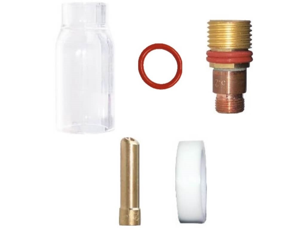 Sada sklenená hubica so sitkom úzka na TIG horák 17/18/26 priemer 1,6 mm ideálna pri zváraní v ťažko viditeľných a dostupných miestach.