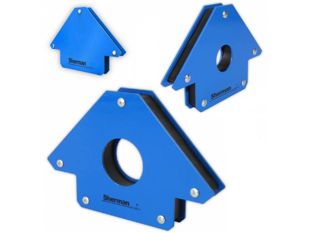 Set magnetických uholníkov Sherman 3 ks - zváracie magnety, ktoré sa hodia k presnému spojeniu zváraných materiálov. Fixácia v uhloch 45°, 90° alebo 135°