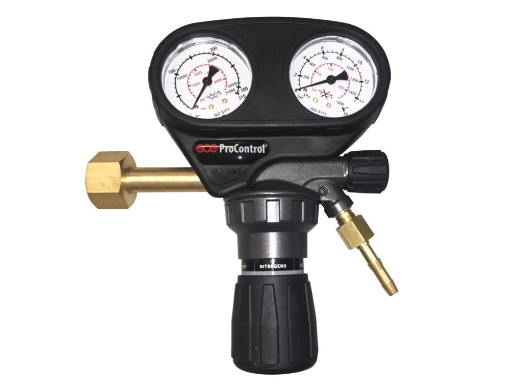 GCE redukčný ventil určený na reguláciu tlaku a prietoku plynových tlakových fliaš dusíka N, znižuje výstupný tlak na požadovaný pracovný tlak a udržuje ho na konštantnej hodnote.