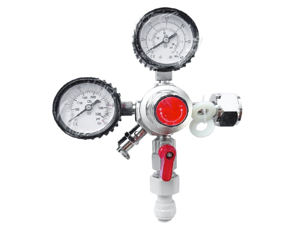 Kvalitný jednostupňový redukčný ventil určený na výčap piva z fliaš s CO₂ alebo Biogonom (N2+CO2). Umožňuje presné nastavenie pracovného tlaku a jeho stabilné udržiavanie počas čapovania. Vybavený je dvoma manometrami – jeden zobrazuje tlak vo fľaši, druhý výstupný tlak. Súčasťou je aj guľový uzáver a výstupná spojka s hadičkou. Vhodný pre domácich pivárov, reštaurácie aj menšie prevádzky.