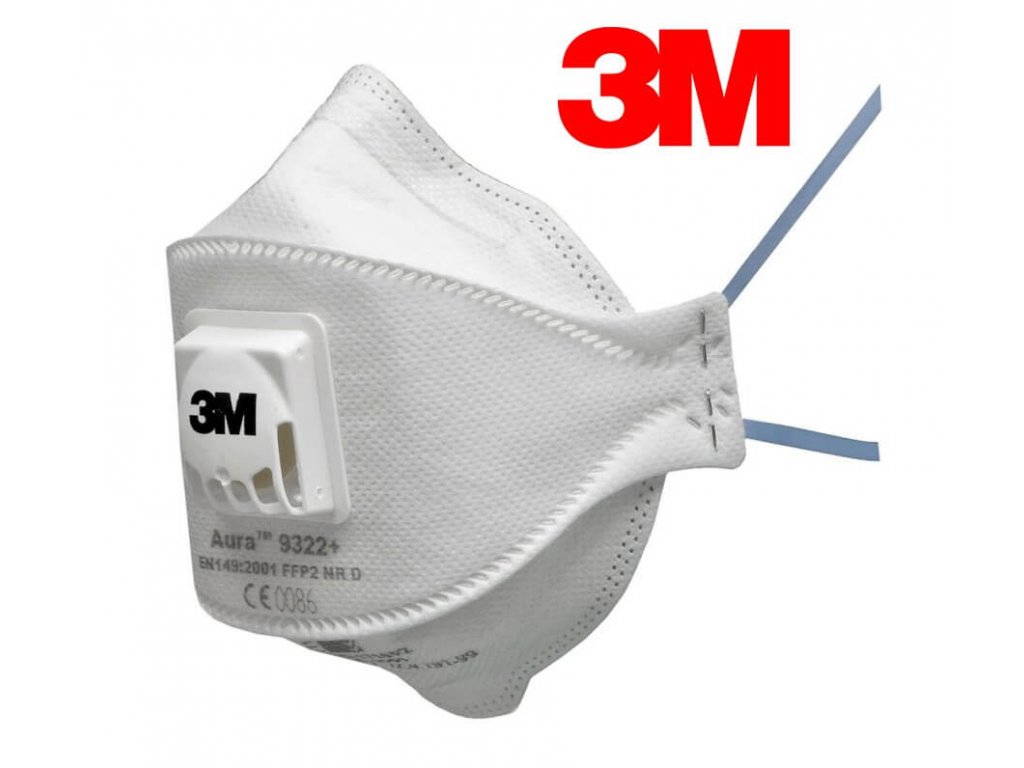 Skladací respirátor (polomaska) Aura™ 9322+ FFP2 NR D s výdychovým ventilom 3M™ Cool Flow™ od top svetového výrobcu 3M. Spĺňa normu EN 149:2001 + A1:2009.
