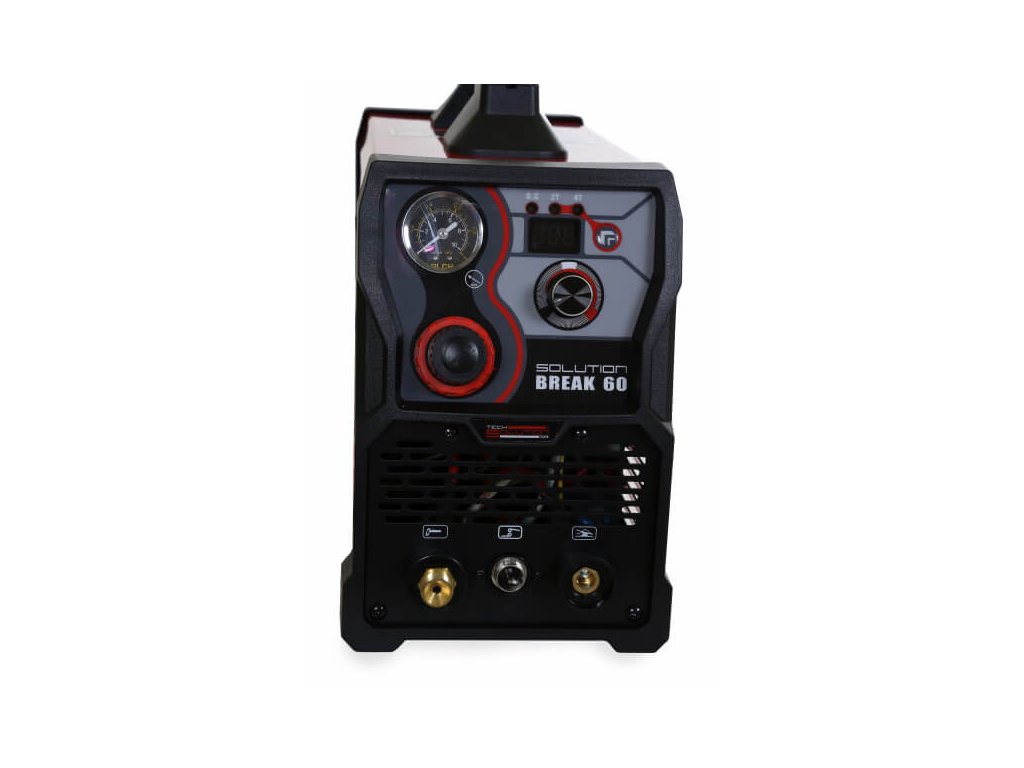 Solution BREAK 60 je invertorová plazmová rezačka pre rezanie ocele, nereze, pozinkovaných plechov,hliníka, med, mosadze a iných železných kovov. Má v sebe zabudovaný nastaviteľný regulátor tlaku vzduchu s integrovaným odkaľovačom a výtokom kalu (v zadnej časti). Zapaľovanie rezacieho oblúka je prostredníctvom pilotného oblúka (tzv."HF" zapaľovanie). Na prednom ovládacom paneli je možné nastaviť požadovaný tlak vzduchu, rezací prúd, výber módu spúšťania 2T (dvoj-takt), alebo 4T (štvor-takt). Nastavená hodnota zváracieho prúdu sa zobrazuje na trojmiestnom LED displeji. K dispozícii je aj indikátor preťaženia.