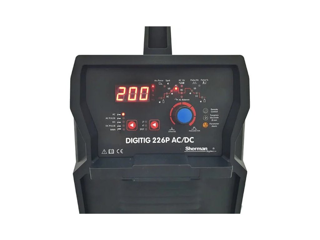Giga set invertorová zváračka Sherman DIGITIG 226P AC/DC sa prioritne používa na zváranie hliníka, nereze a oceľe metódou TIG. Vysokofrekvenčné TIG HF zapaľovanie je samozrejmosť. Rovnako môžné zvárať aj TIG pulzom a obalenou elektródou (MMA).