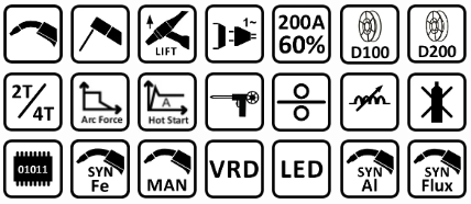 Ponúka tri populárne metódy práce: MMA (obalená elektróda), TIG Lift a MIG/MAG. Vďaka možnosti zmeny polarity umožňuje zvárať pomocou tradičných drôtov v ochrannej atmosfére plynu aj samoochranných drôtov (flux).