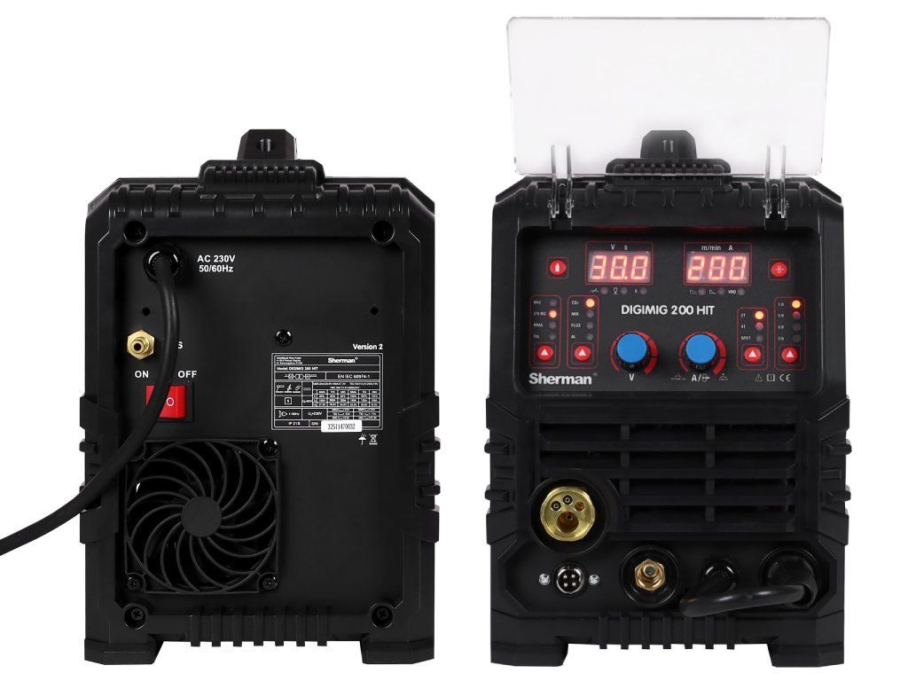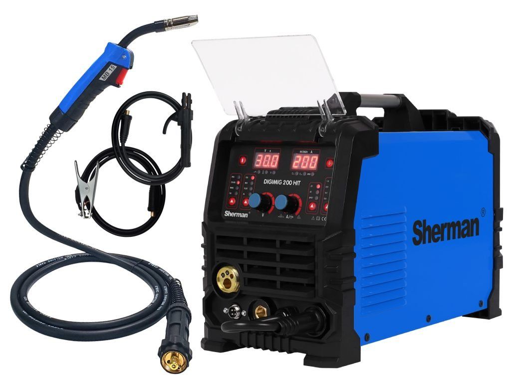 Giga set zváračka CO2 DIGIMIG 200 HIT Sherman je moderné, synergické zariadenie určené na ručné zváranie ocele a neželezných kovov.