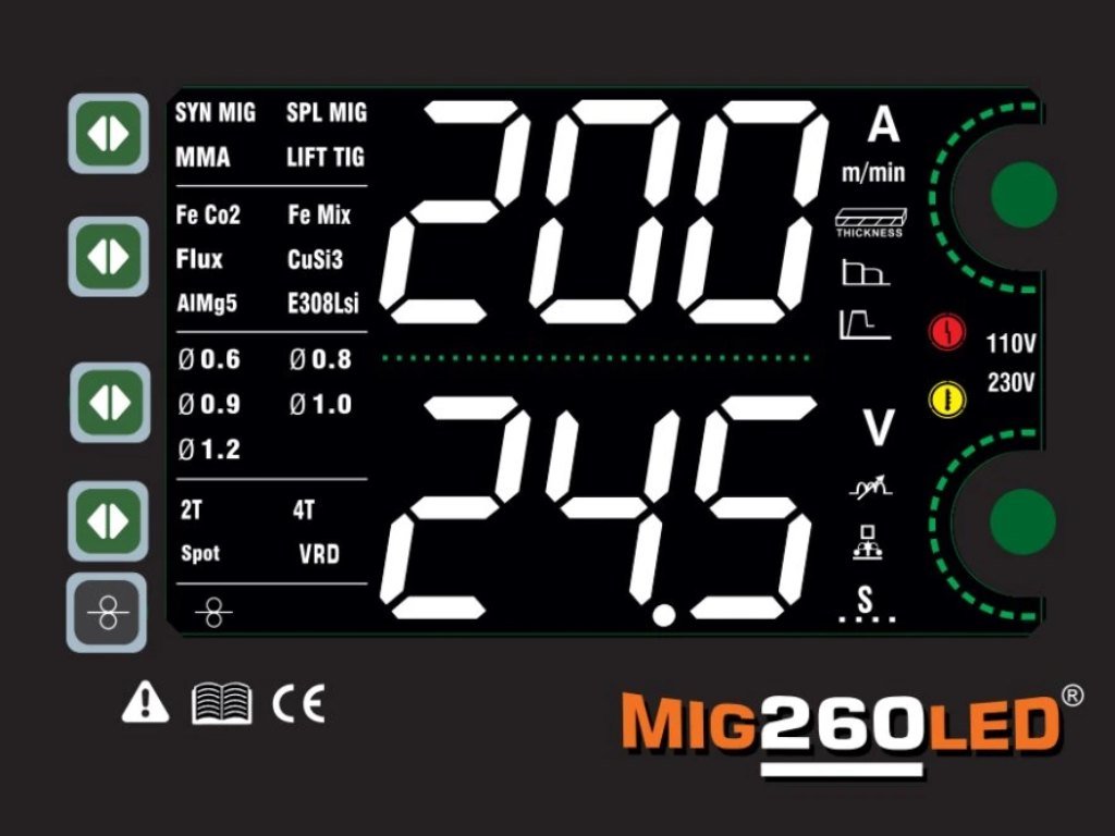Giga set zváračka MIG260LED PANTERMAX je určená na ručné zváranie ocele a neželezných kovov. Umožňuje zváranie metódami MIG-MAG SYN / MIG-MAG / TIG Lift / MMA.