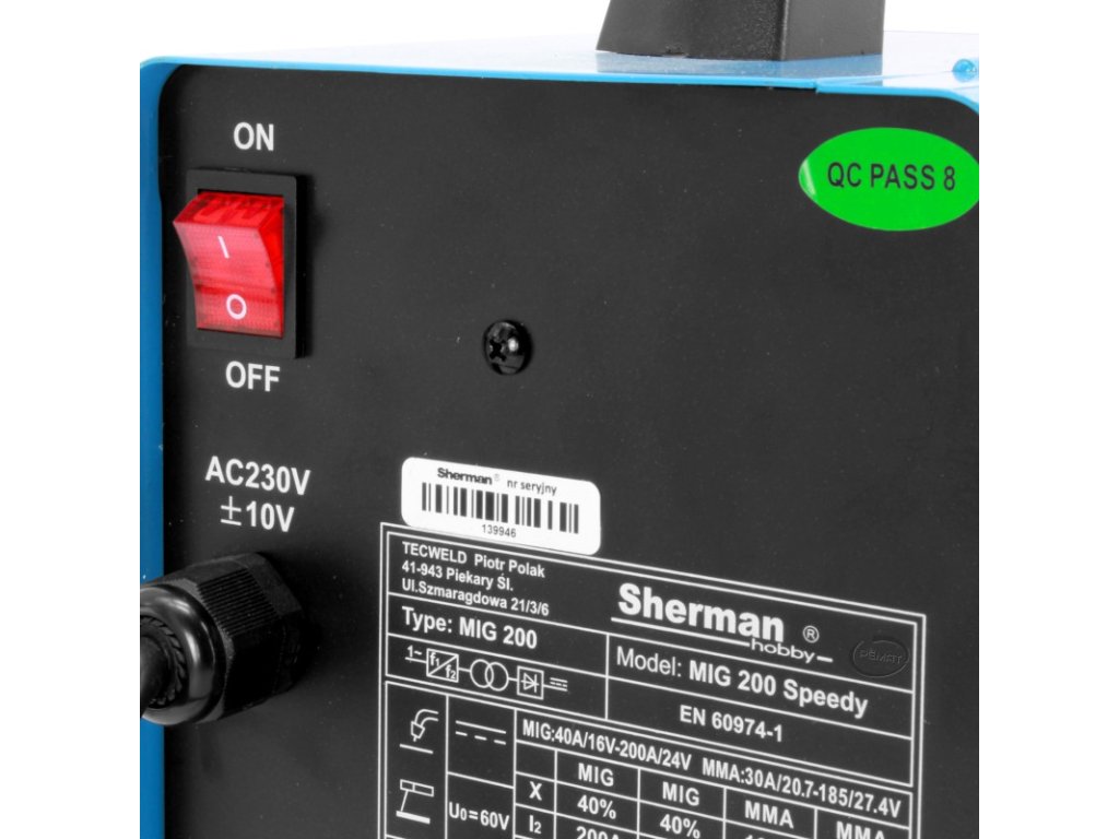 Mega set invertorová zváračka CO2 SHERMAN MIG 200 SPEEDY určená na zváranie ocele a neželezných kovov. Možnosť zvárania drôtom (MIG/MAG) a elektródou (MMA). Pri zmene polarizácie je možné zvárať aj trubičkovým (rúrkovým) drôtom bez použitia plynu.