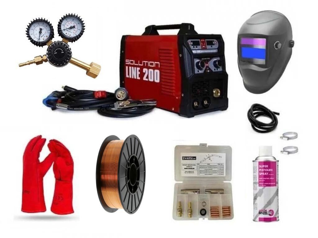 Mega set invertorová zváračka CO2 Solution LINE 200 je multifunkčný inventor, ktorý sa používa na zváranie metódami MMA (elektródou), MIG/MAG (s plynom alebo bez plynu trubičkovým drôtom) a metódou TIG (wolfrámovou elektródou). Možnosť použitia 1 kg a 5 kg cievky.