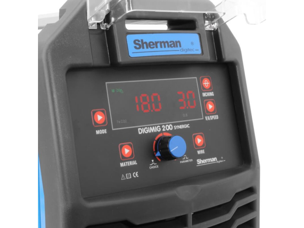 Mega set zváračka DIGIMIG 200 Synergic Sherman vie zvárať metódami MIG/MAG, MMA, TIG Lift. Je to synergická zváračka, kde je možnosť prepnutia do manuálneho zvárania.