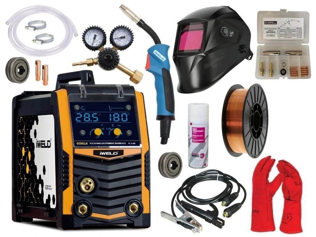 Mega set zváračka iWELD GORILLA POCKETMIG 235 SYNERGIC SILVERBACK