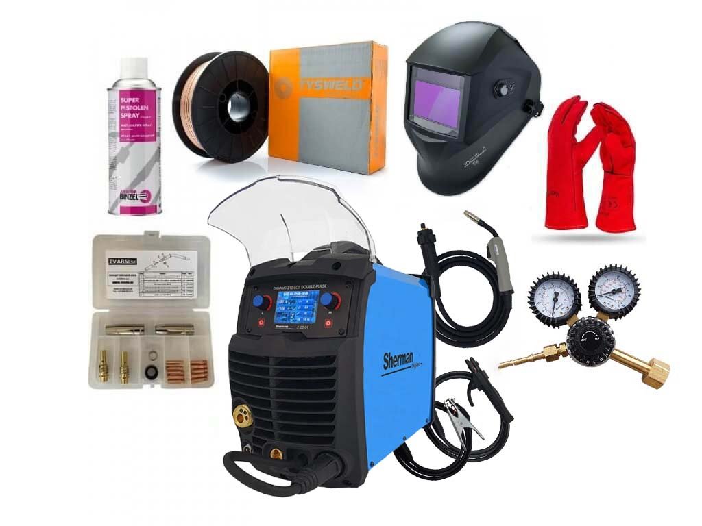 Mega set zváračka Sentinel 210 LCD DOUBLE PULSE Sherman