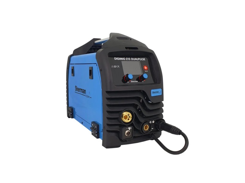 Zváračka DIGIMIG 215 DUALPULSE Sherman slúži na ručné zváranie ocele a neželezných kovov. Umožňuje zváranie metódami MMA (elektróda), TIG Lift (škrtom) a MIG/MAG (CO2).
