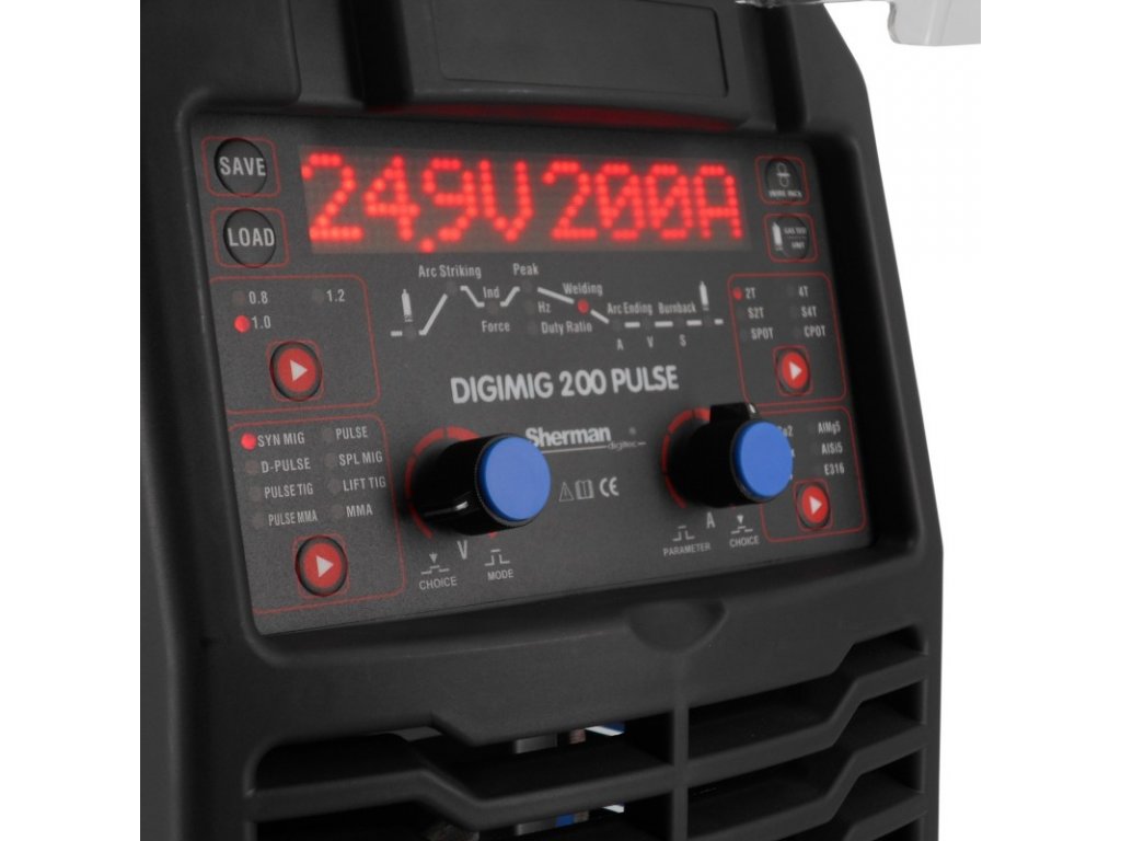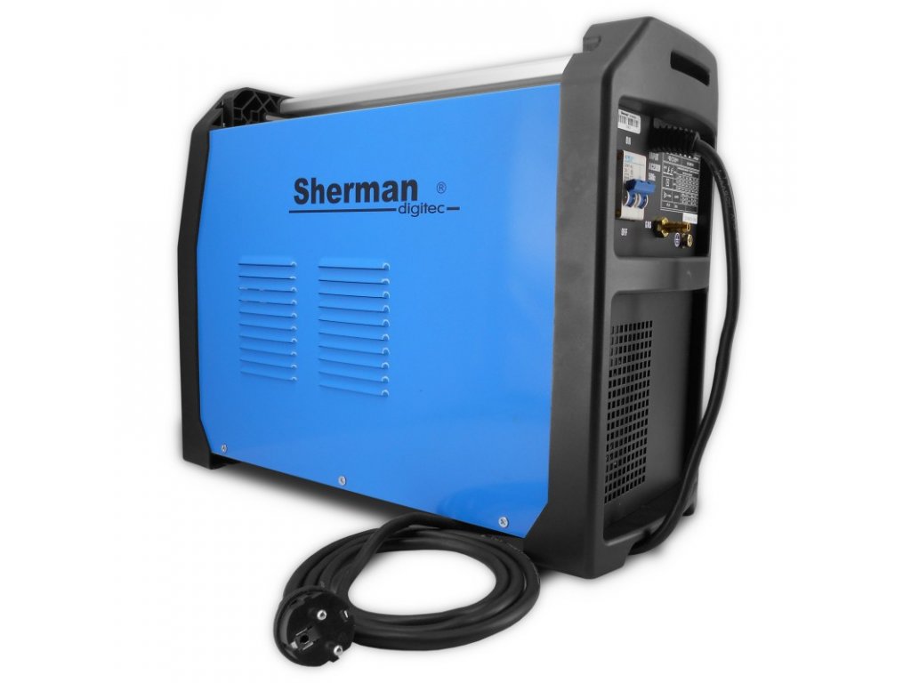 Synergická zváračka značky SHERMAN zvára metódami: MIG/MAG, MMA, TIG DC, BRAZING a používa sa na ručné zváranie oceli a farebných kovov. Jednoduchý a dvojitý pulz umožňuje zváranie MIG/MAG.