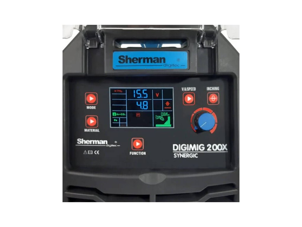 Zváračka DIGIMIG 200X Synergic Sherman je inovatívne zariadenie na ručné zváranie ocele a neželezných kovov metódami MIG/MAG, MMA (elektróda) a Lift TIG (škrtom).